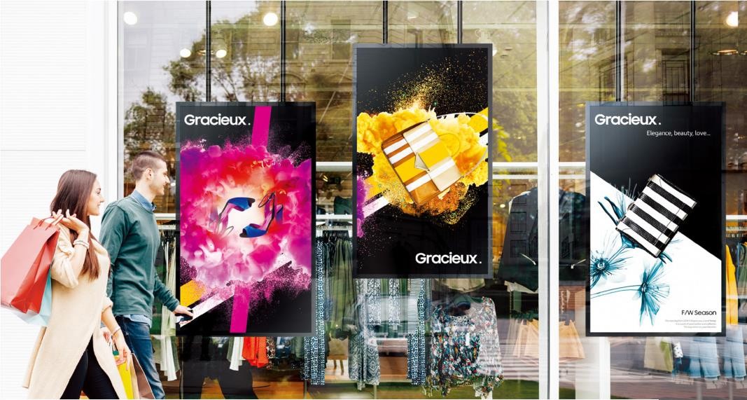 55寸單面高亮度櫥窗機(jī)應(yīng)用于商店信息顯示